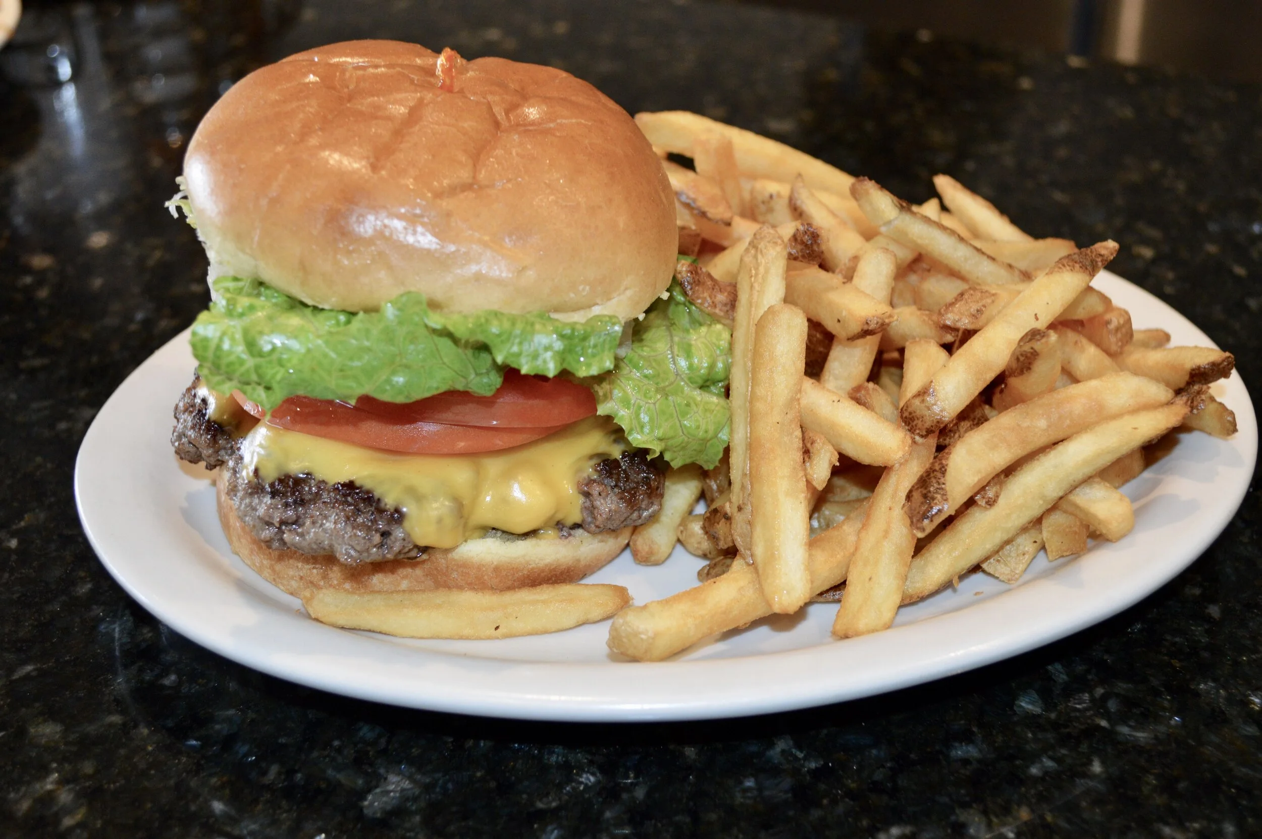 AMERICAN CHEESE AND SERVED WITH FRENCH FRIES.